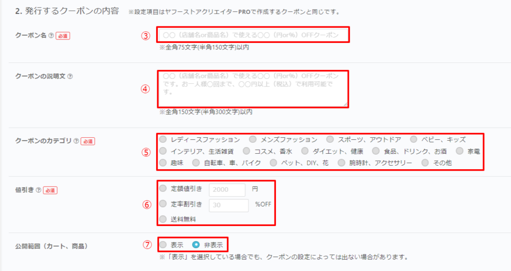 ③Yahoo! ショッピングで表示するクーポン名を入力してください。