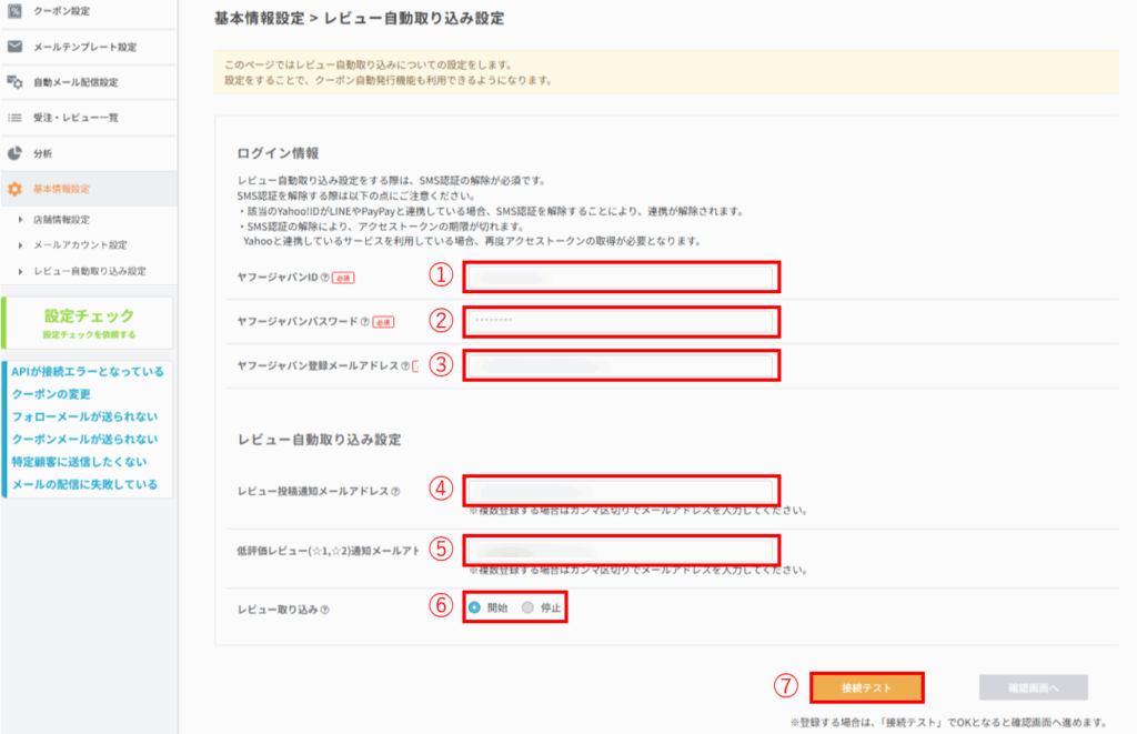 Yahoo! ショッピングの仕様上、レビュー取得には時間がかかる場合がございます。 - レビュー取り込み開始にチェック