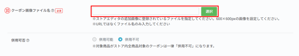 クーポン画像ファイル名の右にある「選択」ボタンをクリックし、設定したいクーポン画像を選択してください。