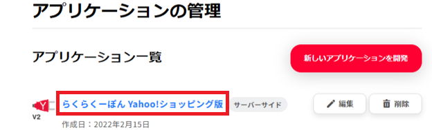 アプリケーション管理画面URL:https://e.developer.yahoo.co.jp/dashboard