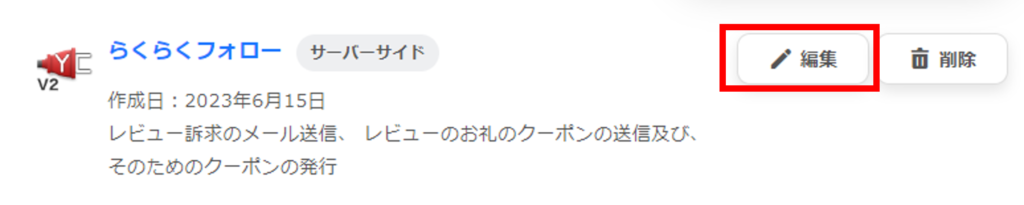 アプリケーション名「らくらくーぽん Yahoo!ショッピング版」の「編集」ボタンをクリックします。