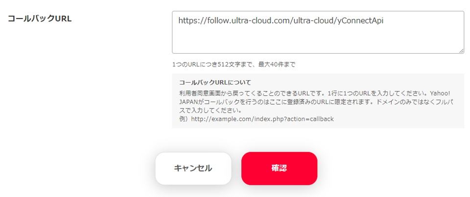 画面最下部の「コールバックURL」に以下URLを入力お願いします。