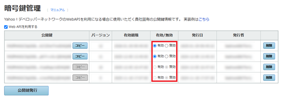 らくらくーぽん Yahoo!ショッピング版に登録されている公開鍵のバージョンが「有効」となっていません。