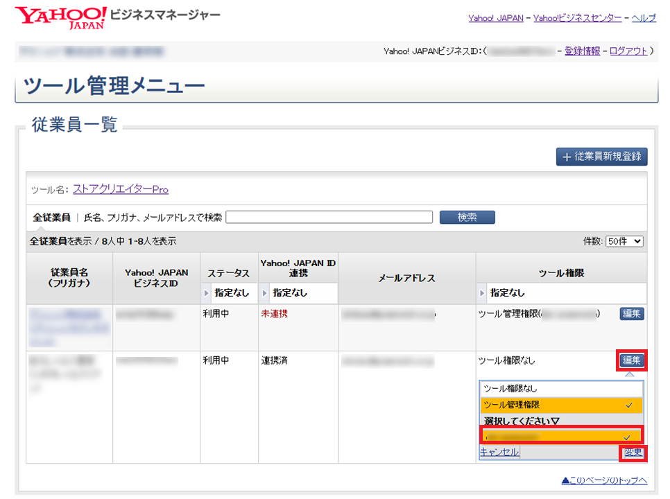 ▼新しいビジネスIDに対して「ツール管理権限(管理者)」を付与します。