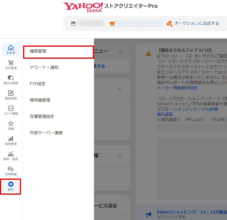 4.ストアクリエイターの必要な権限があるか