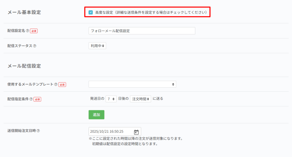 フォローメールのみ設定できる高度な設定