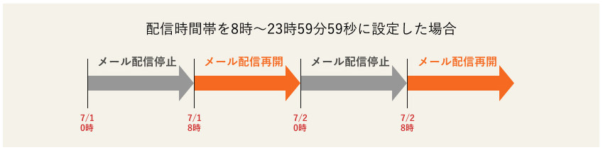 注文時間帯やレビュー投稿後順次メールを配信したいが、深夜など特定の時間帯のメール配信を避けたい場合にご活用いただけます。