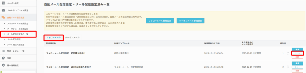 フォローメール配信設定をコピーします。