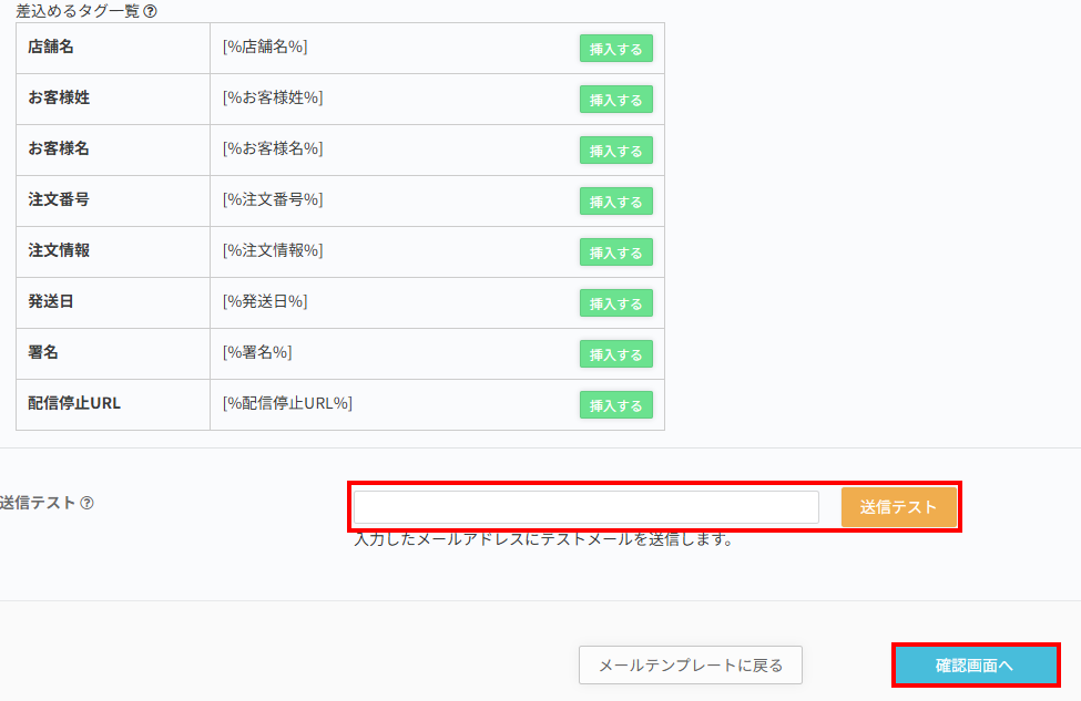 設定に問題なければ、確認画面へ > 登録 で特定商品用のフォローメールテンプレートが作成完了です。