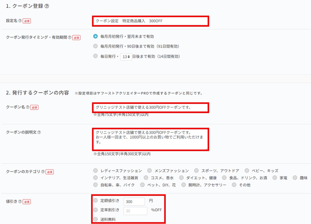 以上で、商品によってクーポン(メール)を変更する設定が完了となります。