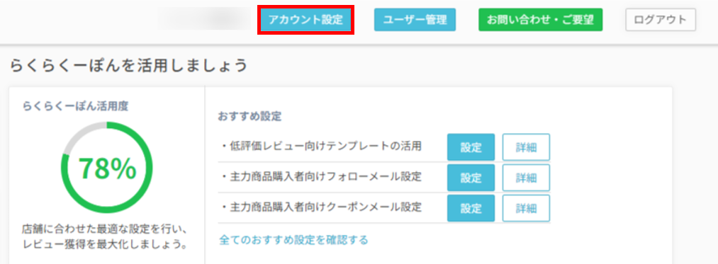 管理画面上部にある「アカウント設定」をクリックします。
