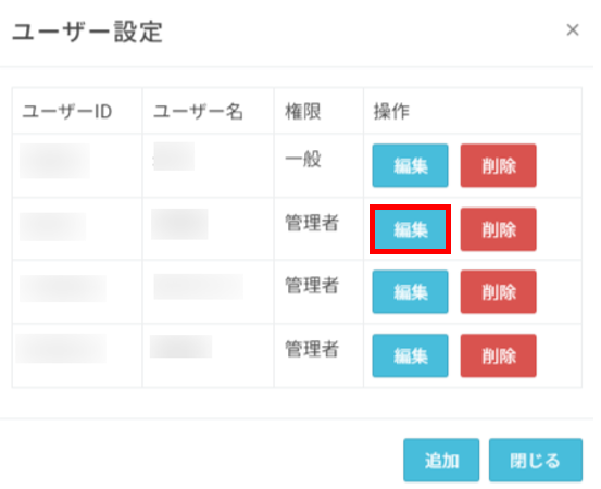 ※一般権限ではログインしているユーザーの変更のみ可能となります。