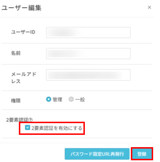 登録している全ユーザーに対して2要素認証を適用する場合(管理者のみ)