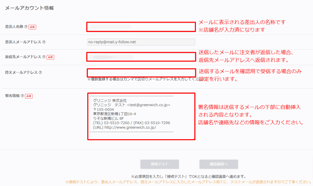 自社のメールアドレスに変更されたい場合は、画面を切り替えますので弊社までご連絡ください。