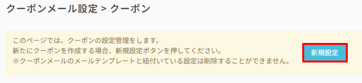 クーポンメール設定>クーポンからリピーター向けクーポンを新規作成します。
